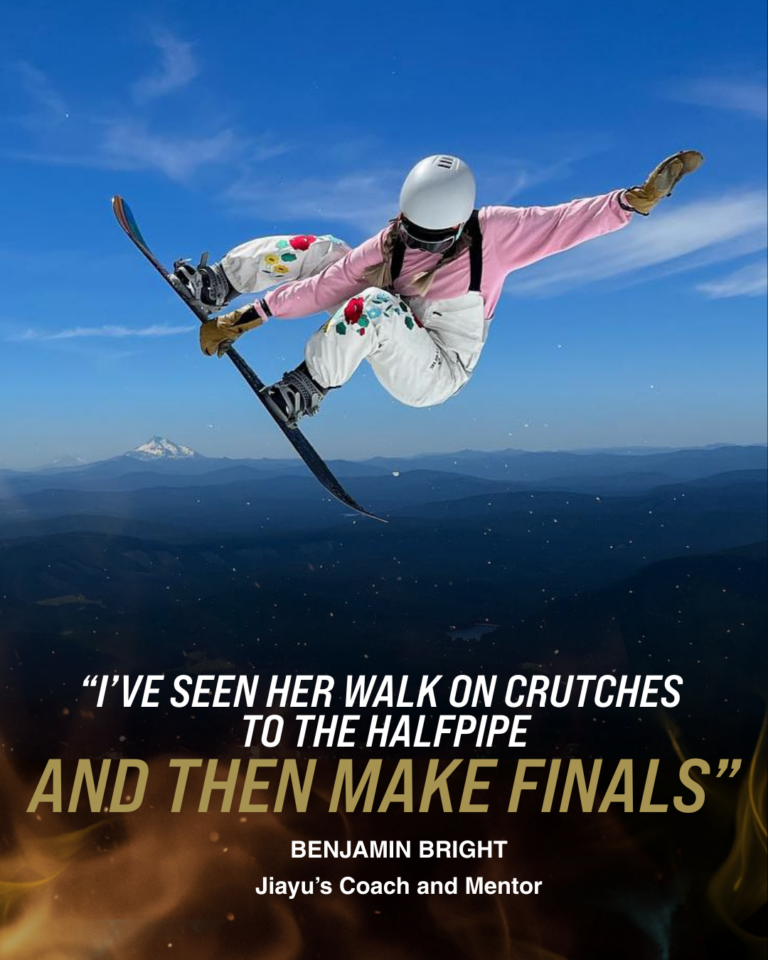 Jiayu has competed on the world’s largest stages, and won some of the most prestigious medals. That said, for her, it’s about more than the shiny medals — it’s about joy, freedom, and being on the mountain with her friends.