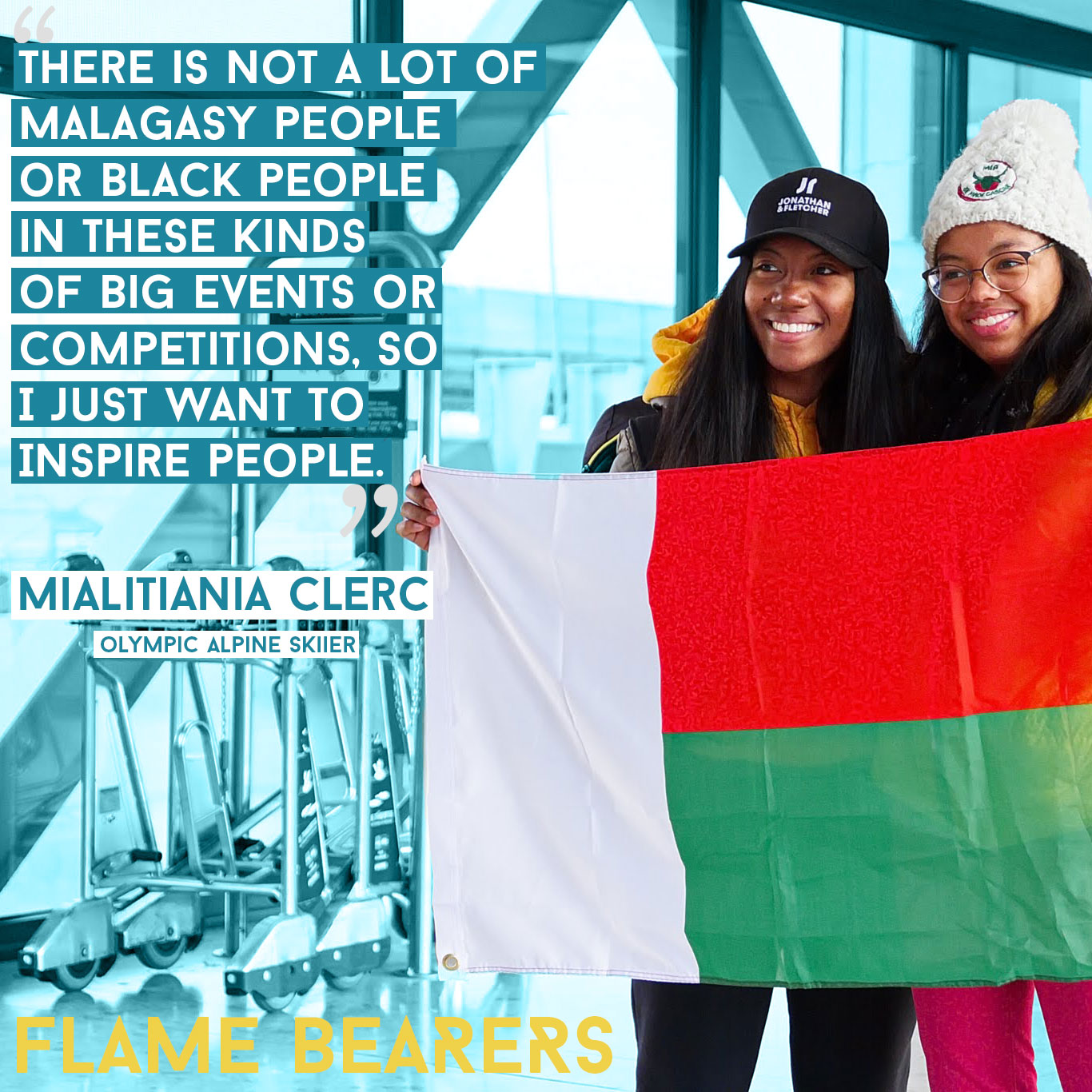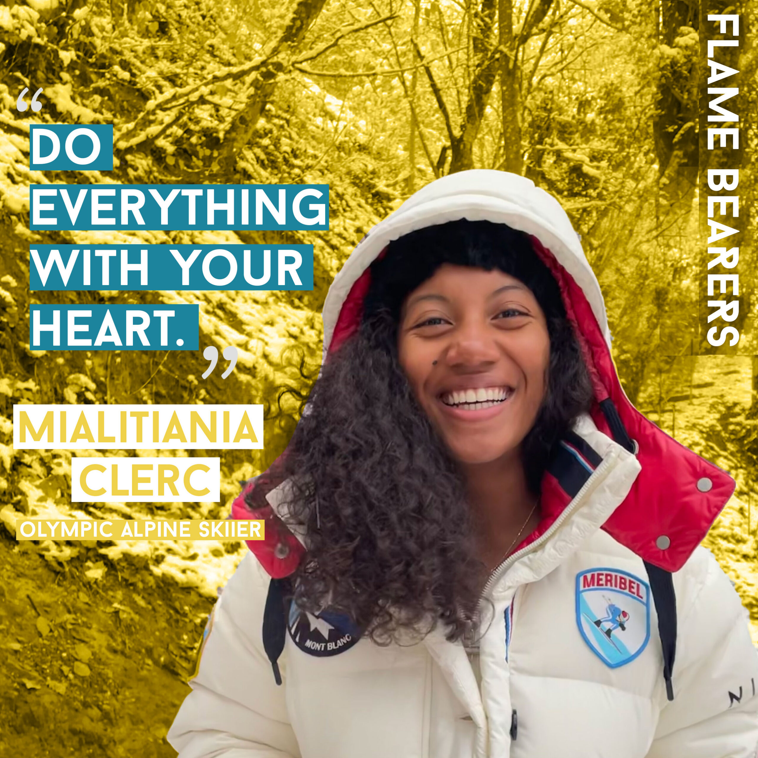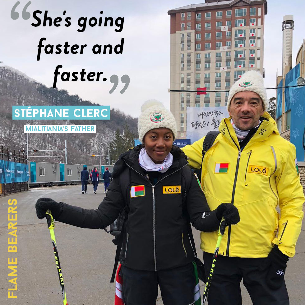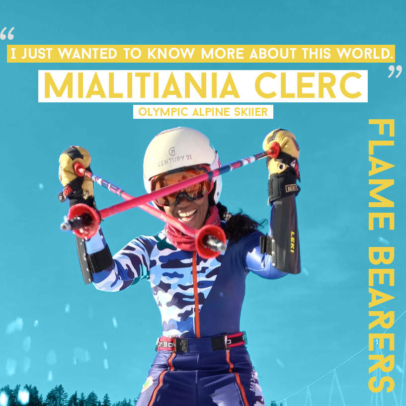 Mialitiana (Mia) is the first woman Winter Olympian from Madagascar and her goal is to “inspire all Africans.” While she grew up in France with her adoptive parents, a big part of Mia’s identity is as a Malagasy, and she wants to be living proof that a black African woman can reach the top in this sport.