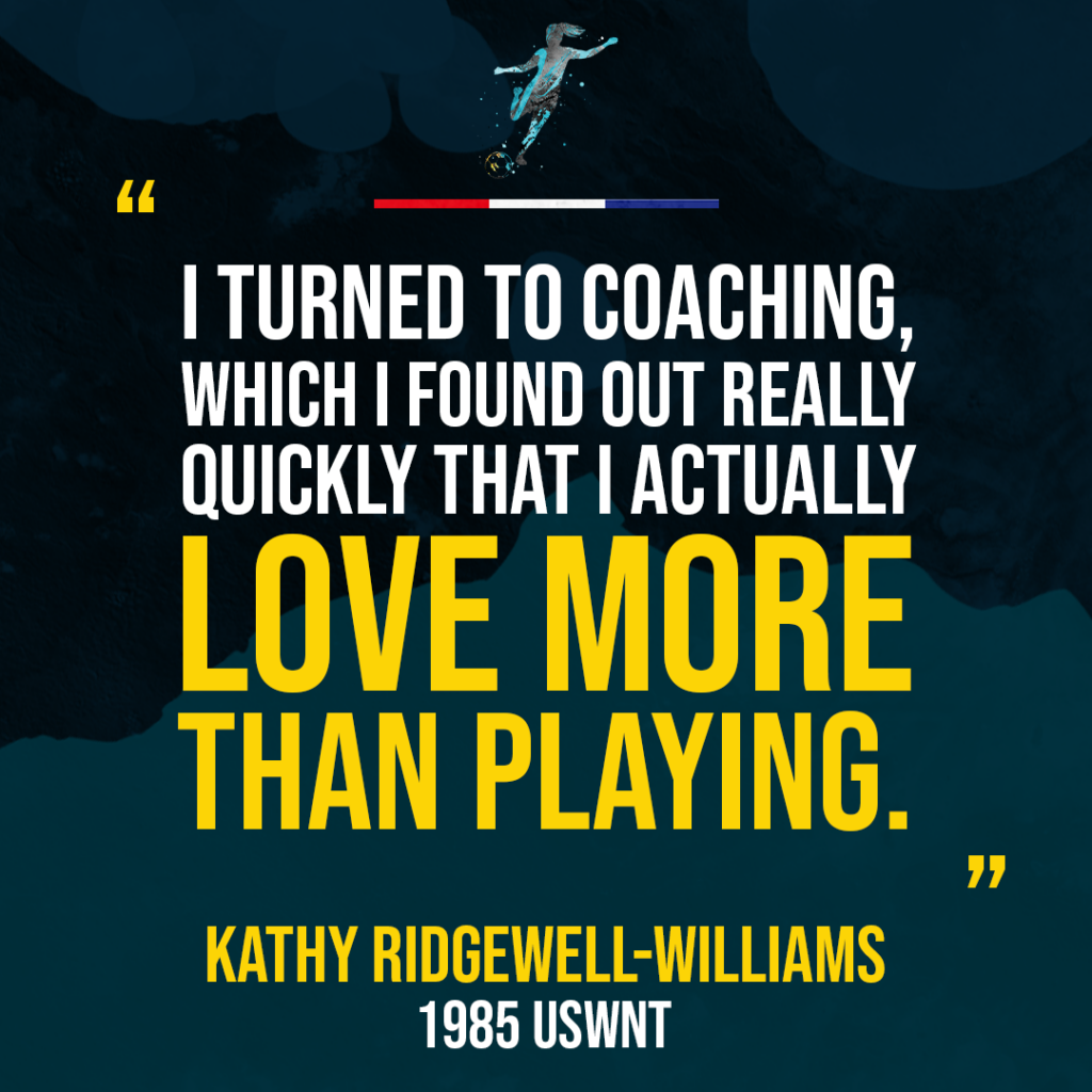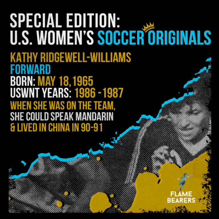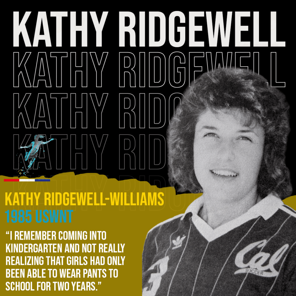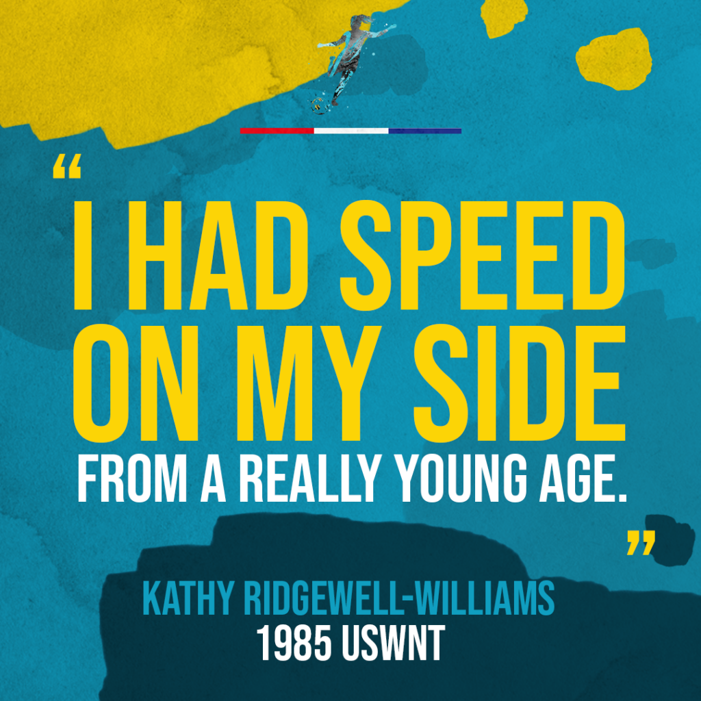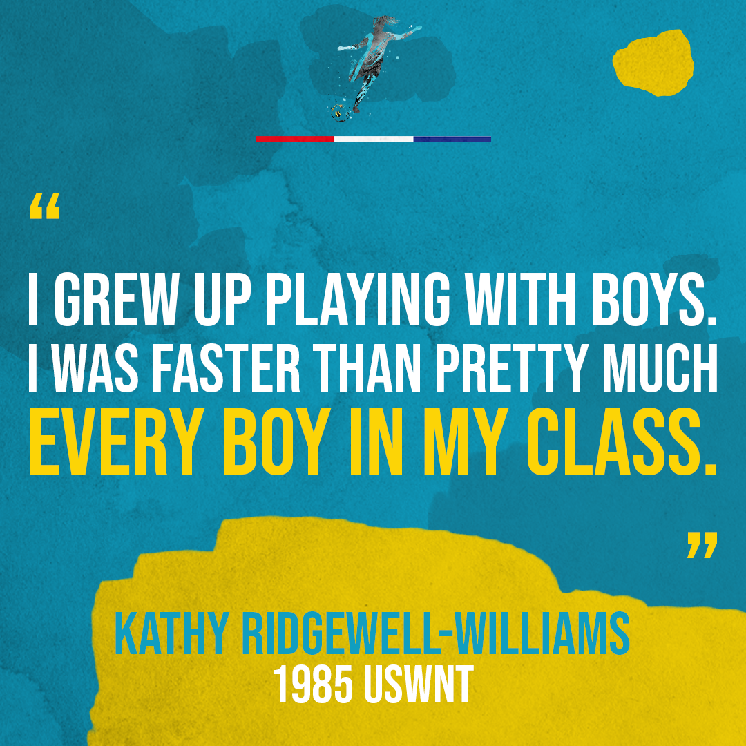 By fourth grade, Kathy was faster than all of the kids in her school. She “always had speed on her side.” She cites the “old man on the bicycle” as one of the most influential people on her game sharing, “He was just this old soccer guy and because there was no soccer anywhere, and the kids were playing, he gave me a couple of pointers on how to do one on ones.” And that changed everything. To the “old man,” wherever you are, thank you for coaching and inspiring one of the legends of the first USWNT.