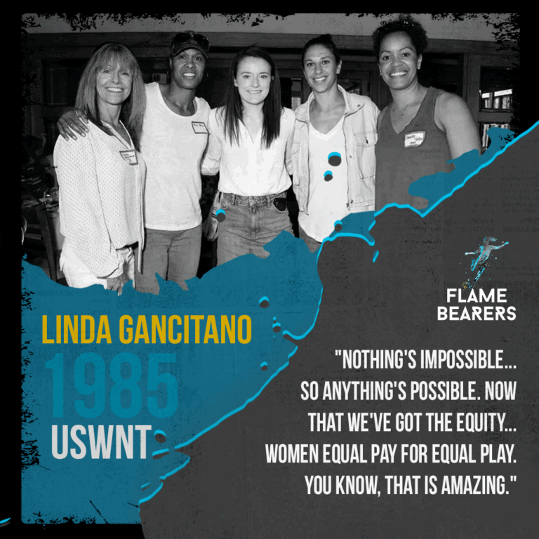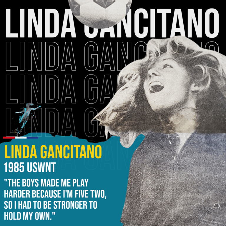 Linda Gancitano was the first girl on her high school boy’s soccer team, so she got to play alongside her younger brother, Nick. According to Nick, even at an early age, Linda “never took any guff from anyone” and would slide tackle the biggest male forwards.