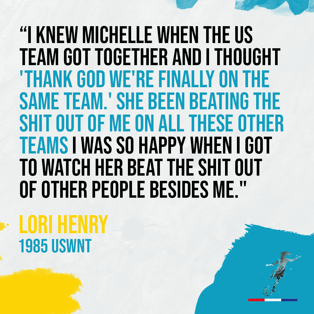 Hilariously enough, after decades of facing off against each other growing up, when Lori and Michelle Akers both made the first USWNT in 1985, co-host Akers says she was so relieved to finally being on the same team after growing up having to face off against Lori: “I got so tired of you killing us every time. I never won a high school game against her.” The feeling was mutual with Lori responding, “My reaction was ‘Thank god’ as she had been beating the shit out of me on all these other teams. I was so happy when we had games as the USA because I got to watch her beat the shit out of other people besides me.”