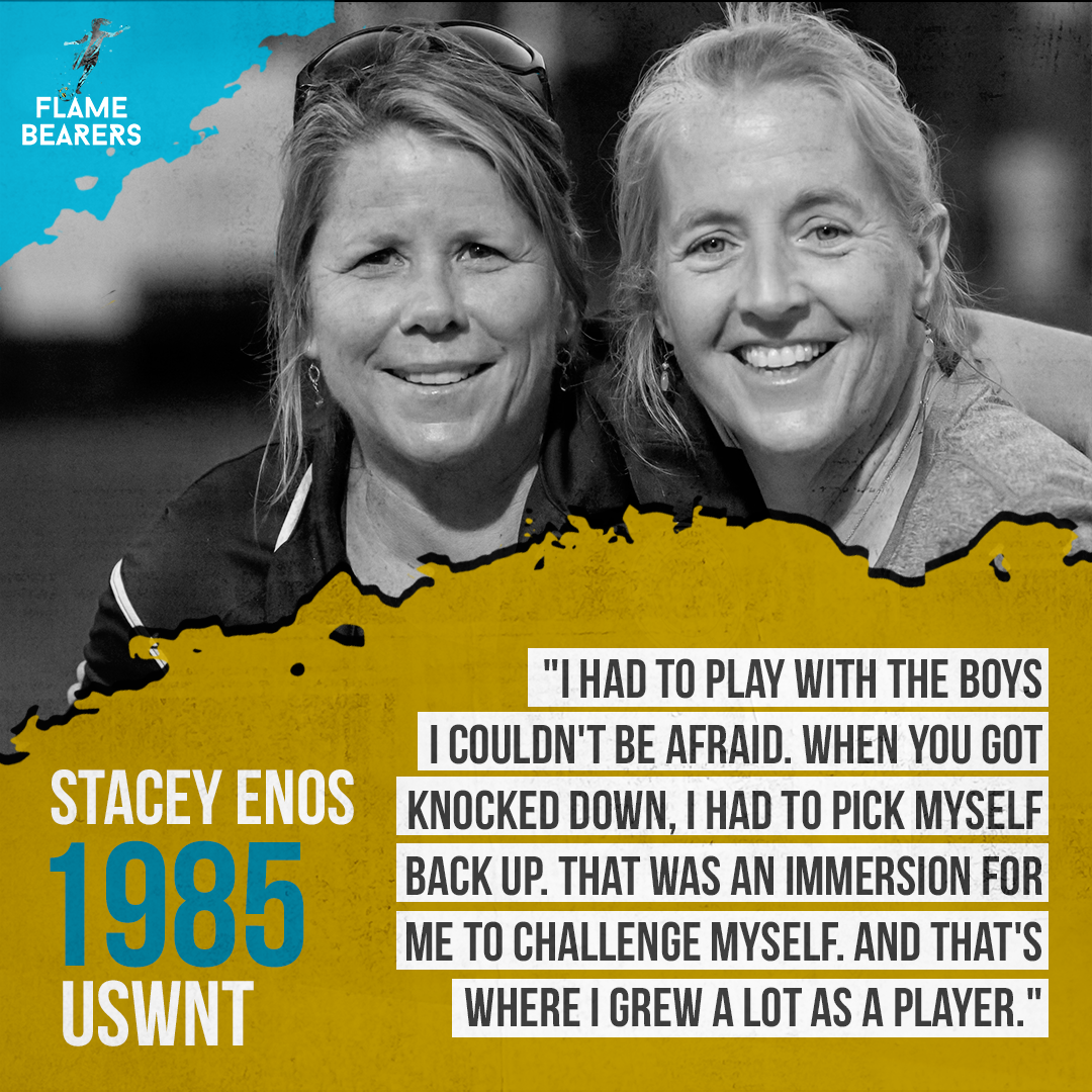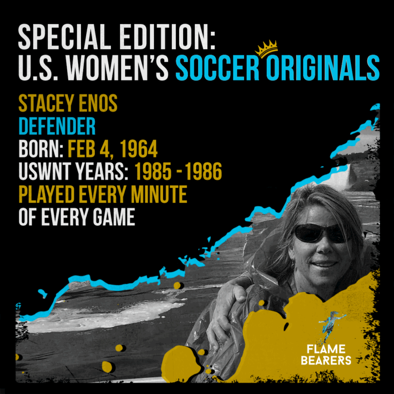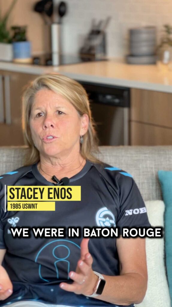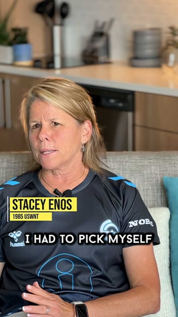 Stacey Enos is one of the three original University of North Carolina (UNC) Tar Heels to blaze the trail to the USWNT. Stacey was actually the FIRST Tar Heel to earn a cap for the USWNT, but Stacey was used to being the first, or the only one doing something. “I had to play with the boys. I couldn’t be afraid. When you got knocked down, I had to pick myself back up,” she says.