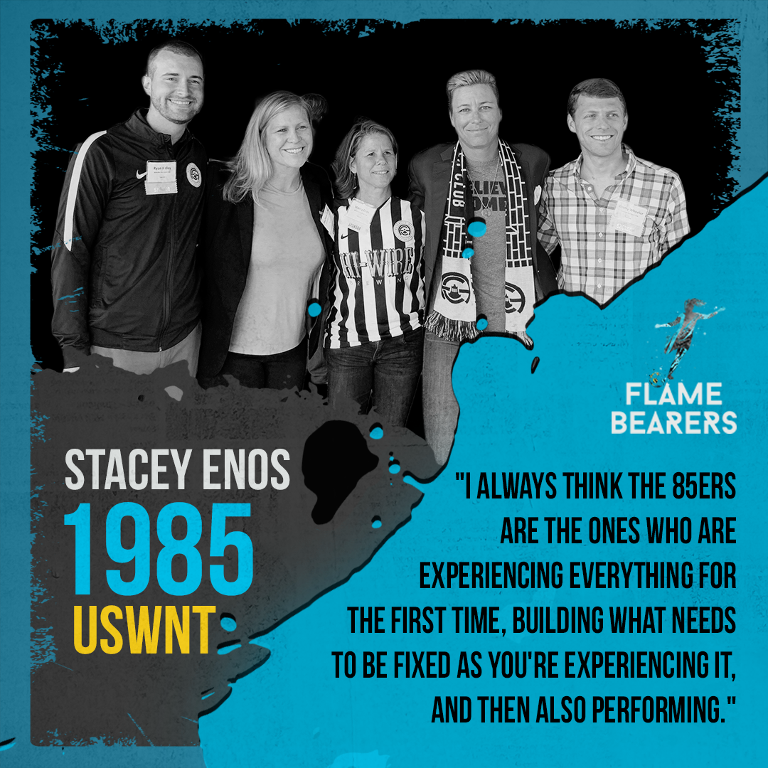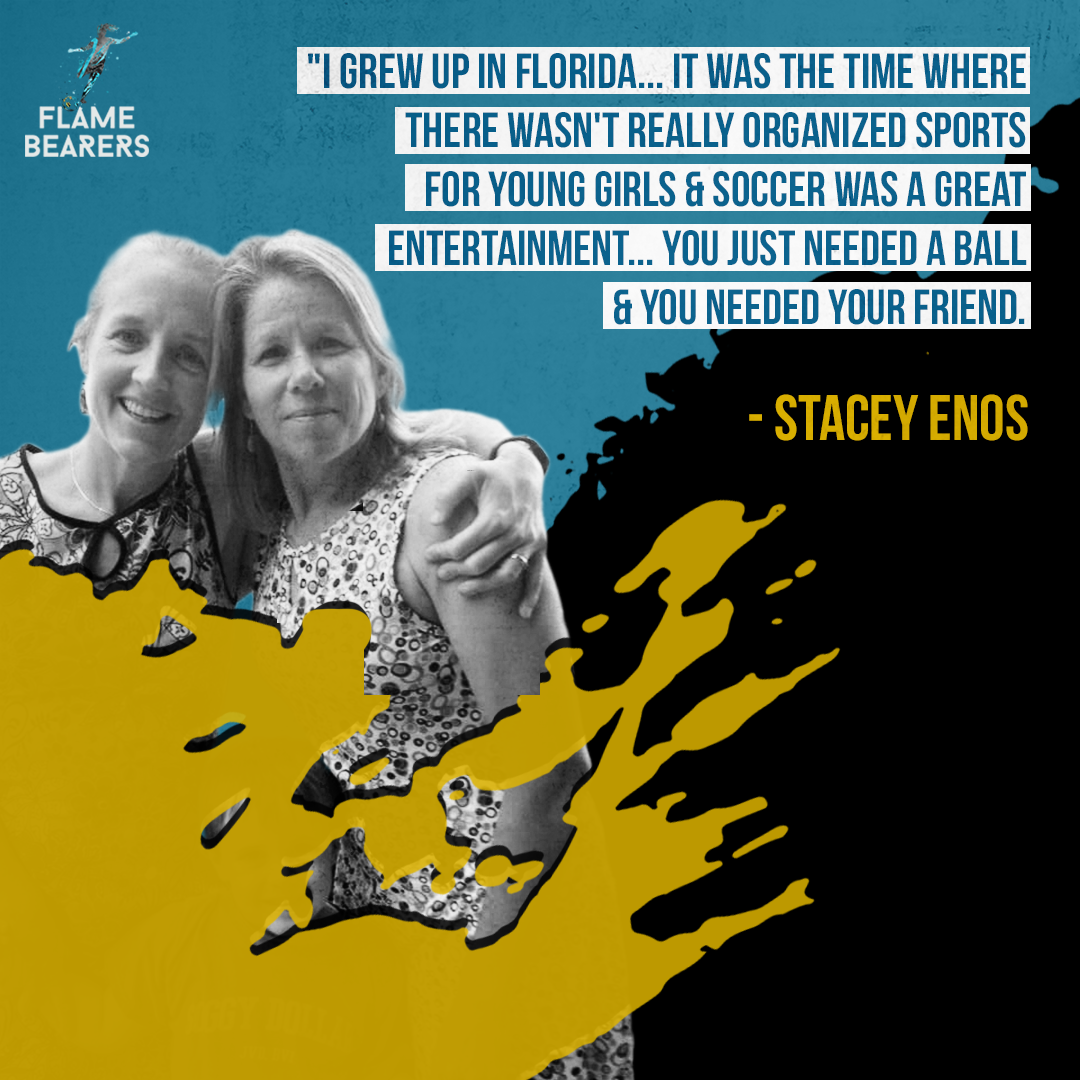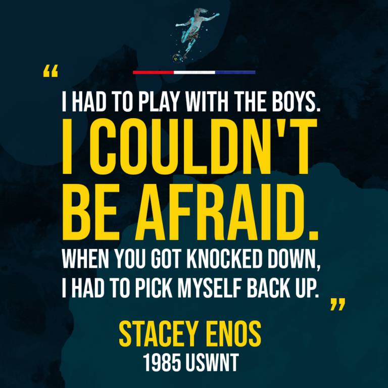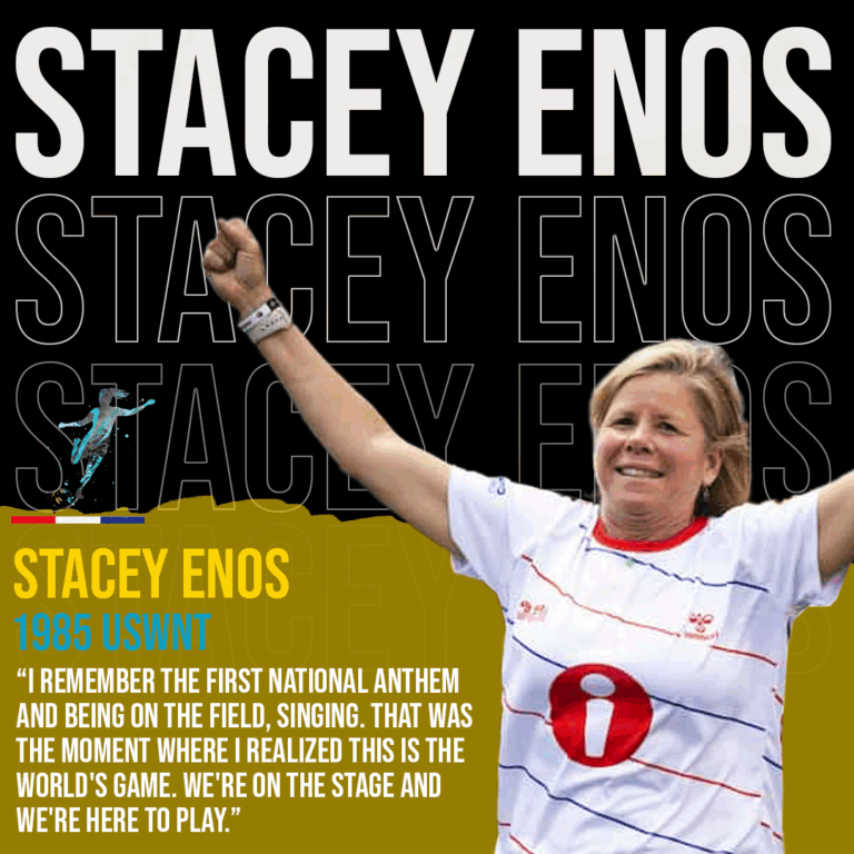 Stacey Enos is one of the three original University of North Carolina (UNC) Tar Heels to blaze the trail to the USWNT. Stacey was actually the FIRST Tar Heel to earn a cap for the USWNT, but Stacey was used to being the first, or the only one doing something. “I had to play with the boys. I couldn’t be afraid. When you got knocked down, I had to pick myself back up,” she says.