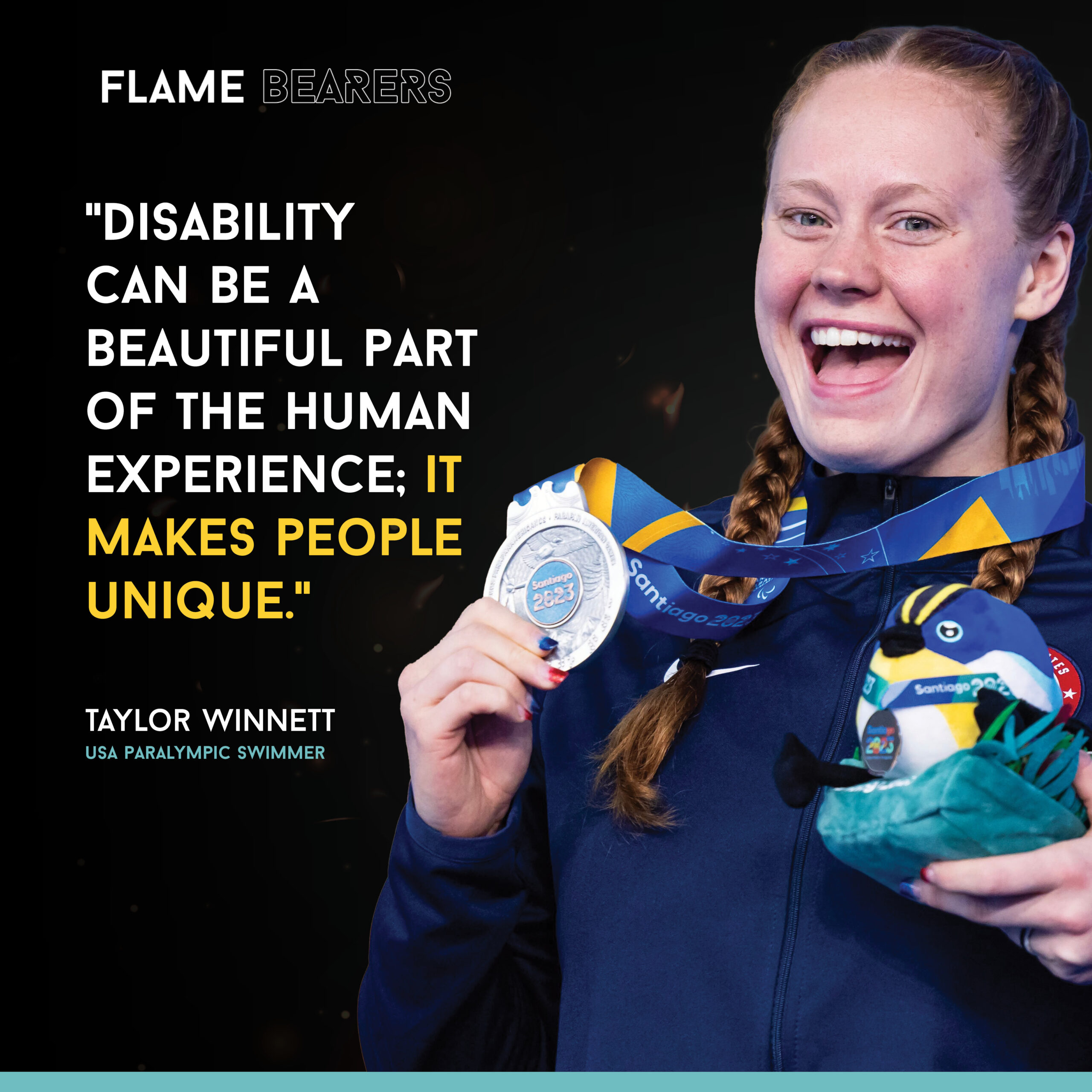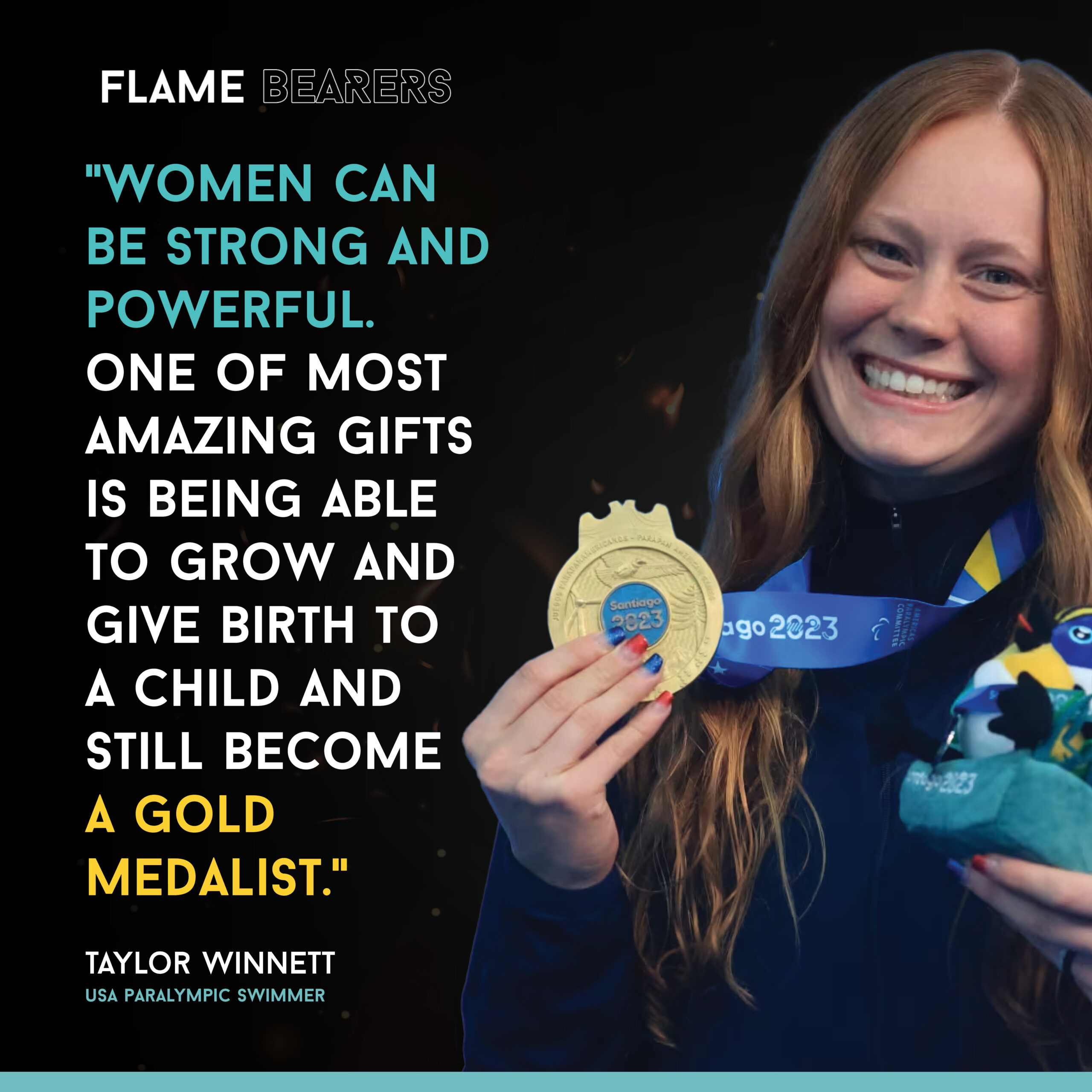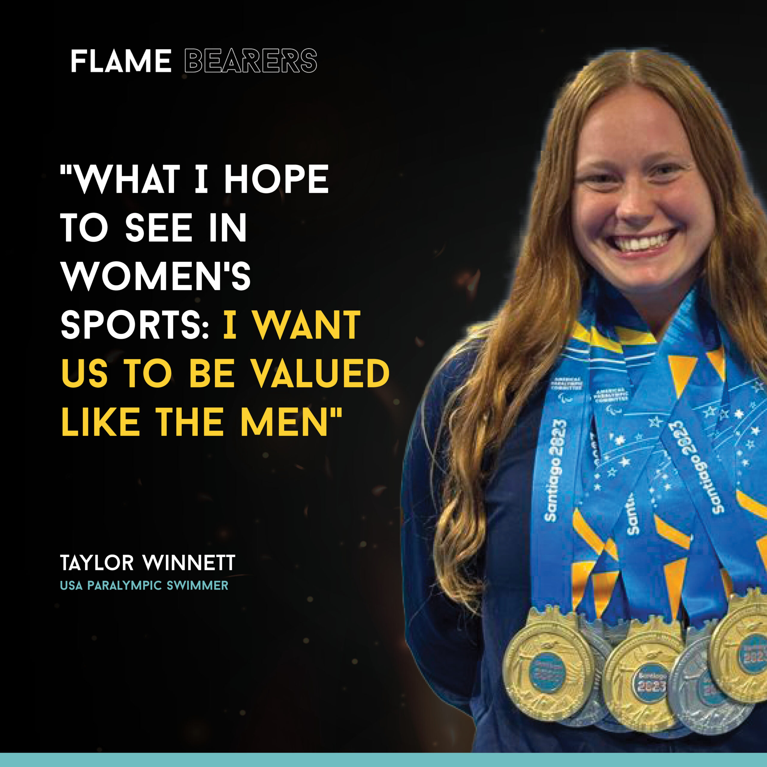Flash forward to today and Taylor is a 2x S10 American Record Holder and 7x Parapan Games medalist. As Taylor looks to the future, she hopes to see a world in which women are “valued like the men.” She also shares how she hopes to become a Mom and how “women can be strong and powerful” while also at the top of their sport.