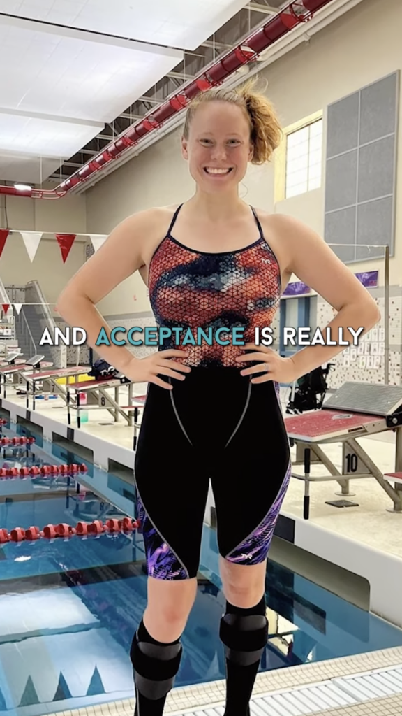 Taylor has been in the pool since age 4, when her mom (a swim coach) and older sister (also a swimmer) first introduced her to the water. A D1 recruit at Loyola University Maryland, Taylor was gearing up to make a splash at the collegiate level. She was then diagnosed with Ehlers-Danlos syndrome, a condition characterized by joint pain, loose joints, and hypermobility.