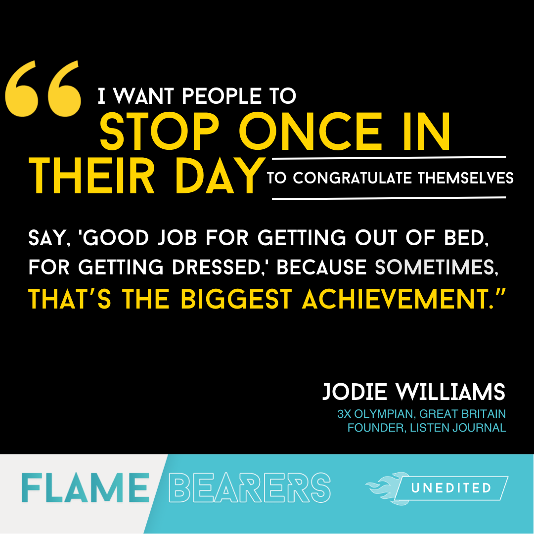 Jodie opens up about the highs and lows of pursuing her dream, describing how fear has been ever-present: “Fear is a huge part of it… if you’re dreaming that big, there’s going to be a lot of fear involved. That’s part of the journey.” Learning to manage her inner dialogue, she says, has been essential, as she’s worked to “make friends” with her inner critic and celebrate each small victory. Jodie shares how wherever you are in your journey, she wants you to stop to congratulate yourself today. “Say, ‘Good job for getting out of bed, for getting dressed,’ because sometimes, that’s the biggest achievement of the day.”