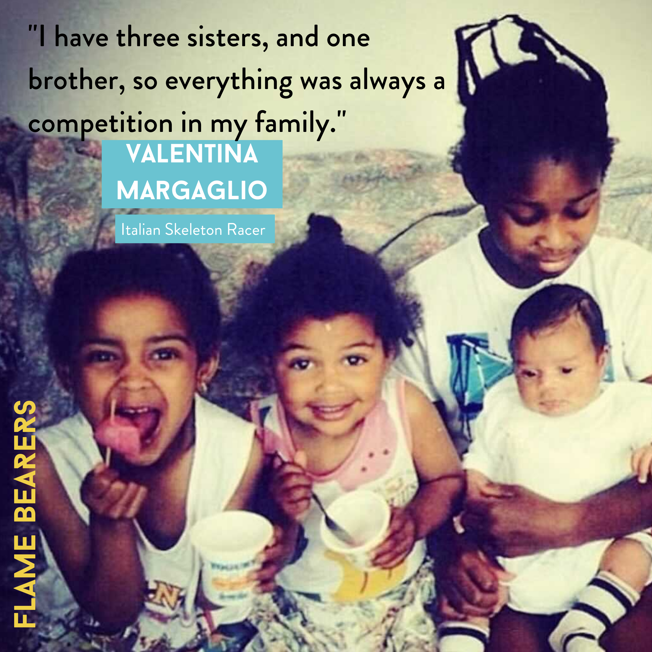 Valentina or ‘The Lioness’ grew up in Italy as a ‘very competitive child’ with her three sisters and one brother. She describes her heritage as “the perfect mix” of cultures, crediting each of her parents and their respective origins with various parts of who she is today (her Dad is from Italy and her Mom is from the Ivory Coast).